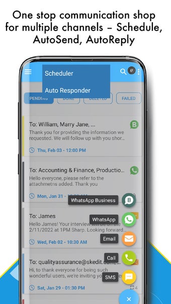 Dengan aplikasi ini, Anda dapat menjadwalkan pesan untuk pelanggan Anda, calon pelanggan, dan pelanggan lama Anda. Anda juga dapat menjadwalkan pesan untuk kontak Anda, sehingga Anda dapat tetap berhubungan dengan mereka dan memastikan bahwa mereka mengetahui produk atau layanan baru yang Anda tawarkan.